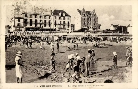 Ak Quiberon Morbihan, La Plage devant l'Hotel Penthievre