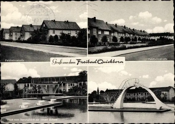 Ak Quickborn in Holstein, Freibad, Feldbehnstraße, neue Schule