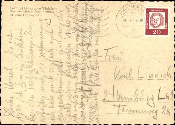 Zustand, siehe Scan, gelaufen, 1963 - ca 15 cm X 10 cm