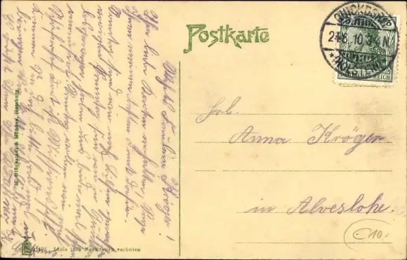 Zustand, siehe Scan, gelaufen, 1910 - ca 14 cm X 9 cm