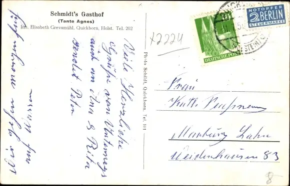 Ak Quickborn in Holstein, Schmidt's Gasthof, Tante Agnes, Restaurant