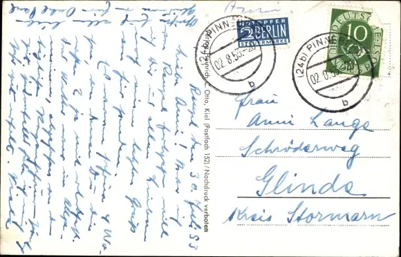 Zustand, siehe Scan, gelaufen, 1953 - ca 14 cm X 9 cm
