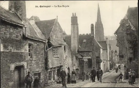Ak Quimper Finistère, la rue Royale
