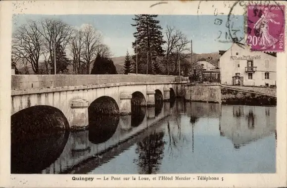 Ak Quingey Doubs, Pont sur la Loue, Hotel Mercier