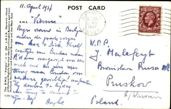 Ak RMS Vienna, London and North Eastern Railway, LNER, Dampfer, Fährschiff