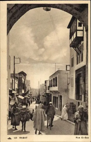 Ak Rabat Marokko, Rue El-Gza, Straßenszene, Esel
