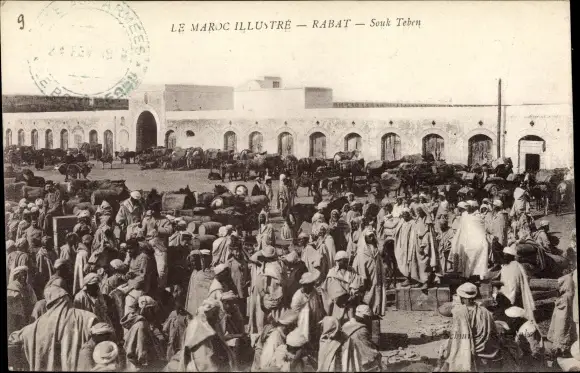 Ak Rabat Marokko, Souk Teben, Marktszene, Gebäude
