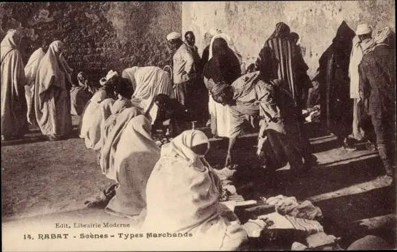 Ak Rabat Marokko, Types Marchands, Händler auf dem Markt