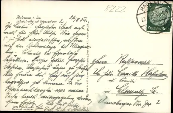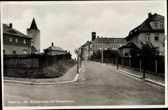 Ak Rabenau im Erzgebirge, Schulstraße mit Wasserturm