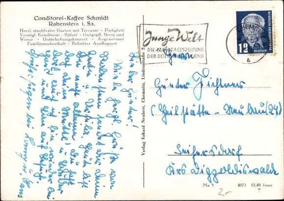 Ak Rabenstein Chemnitz in Sachsen, Panorama, Conditorei Kaffee Schmidt
