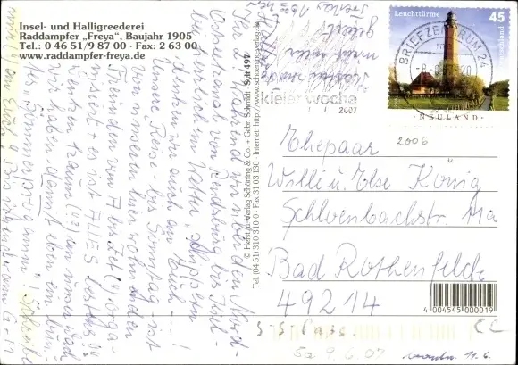 Ak Raddampfer Freya, Insel- und Halligreederei