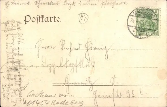 Zustand, siehe Scan, gelaufen, 1905 - ca 14 cm X 9 cm