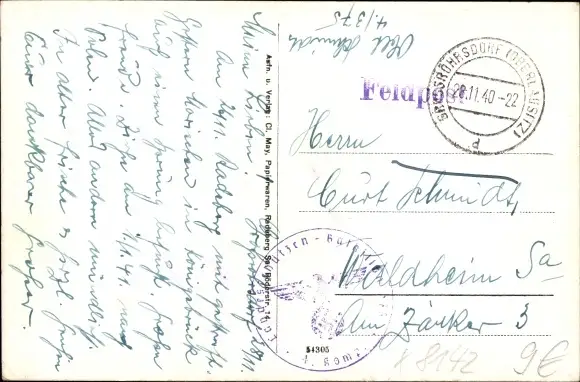 Zustand, siehe Scan, gelaufen, 1940 - ca 14 cm X 9 cm