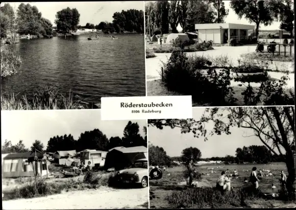 Ak Radeburg in Sachsen, Röderstaubecken, Campingplatz, See, Rutsche