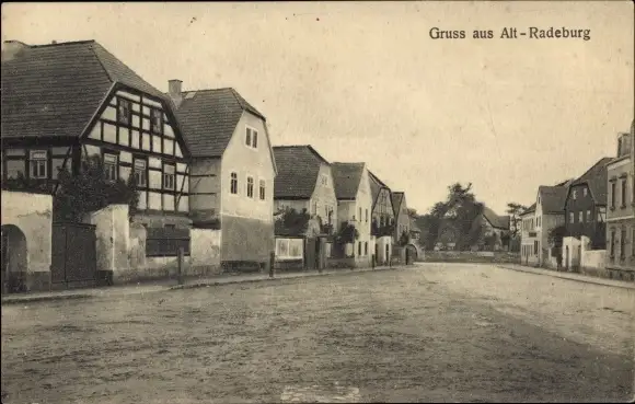 Ak Radeburg in Sachsen, Straßenpartie, Fachwerkhäuser