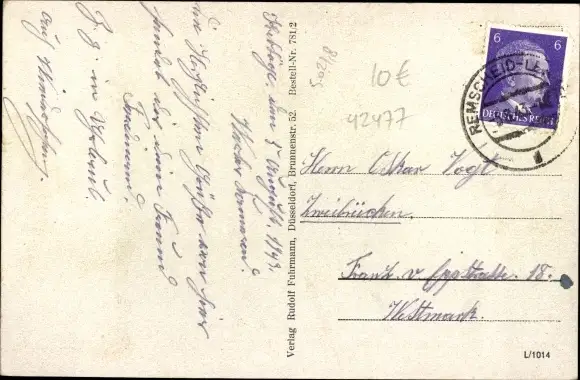 Zustand, siehe Scan, gelaufen, 1943 - ca 14 cm X 9 cm