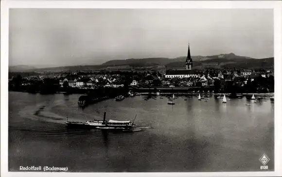 Ak Radolfzell am Bodensee, Dampfer, Fliegeraufnahme
