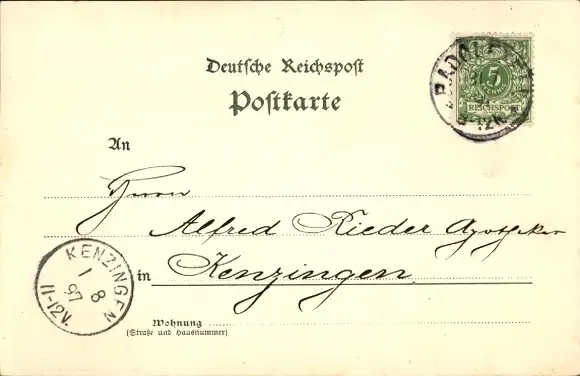 Zustand, siehe Scan, gelaufen, 1897 - ca 15 cm X 9 cm