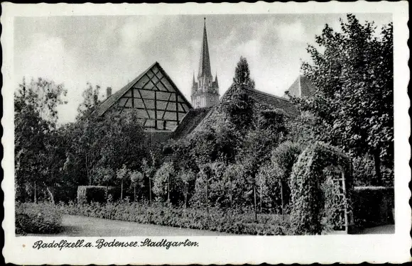 Ak Radolfzell am Bodensee, Stadtgarten, Kirchturm