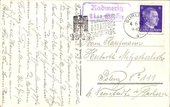 Zustand, siehe Scan, gelaufen, 1942 - ca 14 cm X 9 cm