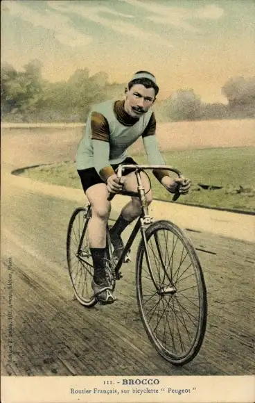 Ak Radrennfahrer Brocco, Radrennbahn, Fahrrad Peugeot