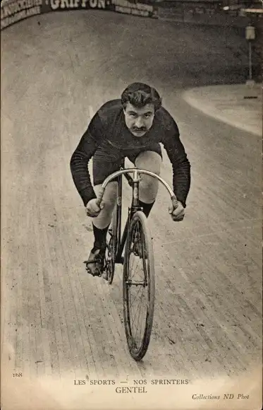 Ak Radrennfahrer Gentel, französischer Sprinter, Radrennbahn