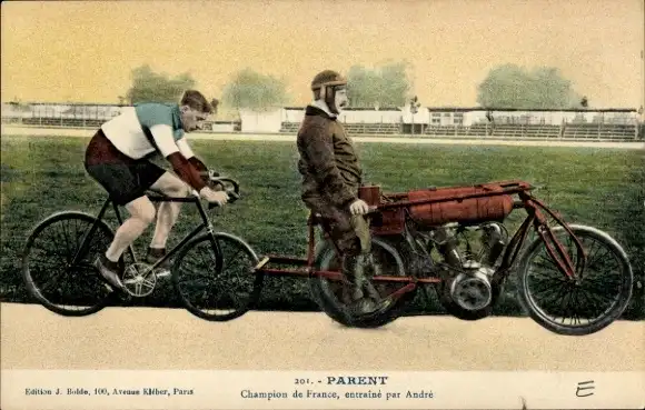 Ak Radrennfahrer Parent, Steherrennen, Bahnradsport, mit Schrittmacher