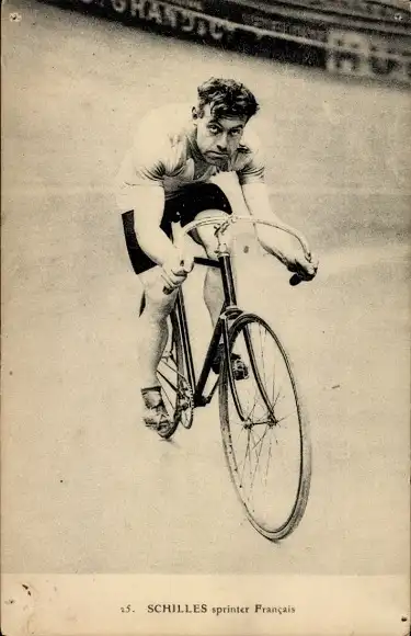 Ak Radrennfahrer Schilles, französischer Sprinter, Radrennbahn