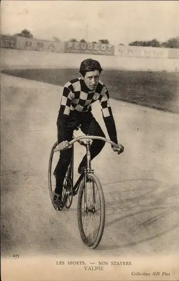 Ak Radrennfahrer Valpie, franzäsischer Steher, Radrennbahn