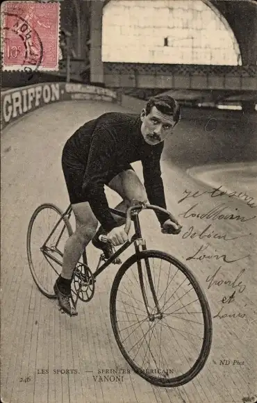 Ak Radrennfahrer Vanoni, amerikanischer Sprinter, Radrennbahn