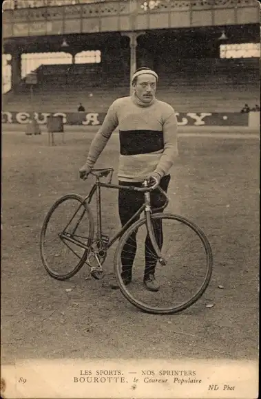 Ak Radrennsport, Radrennfahrer Bourotte, Sprinter, Radrennbahn