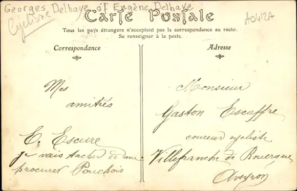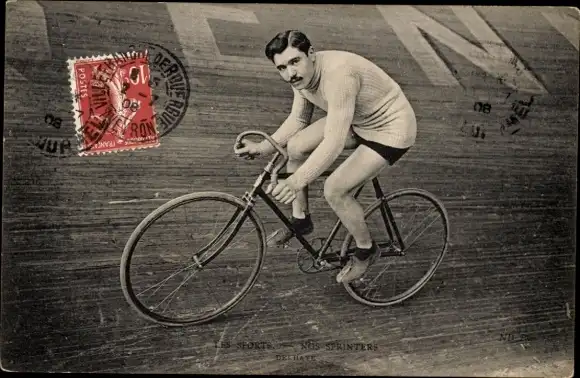 Ak Radrennsport, Radrennfahrer Delhaye, Sprinter, Radrennbahn