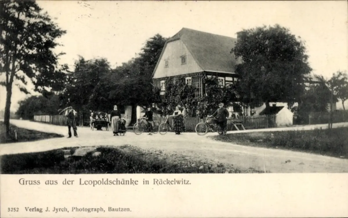 Ak Räckelwitz Oberlausitz, Leopoldschänke, Radfahrer
