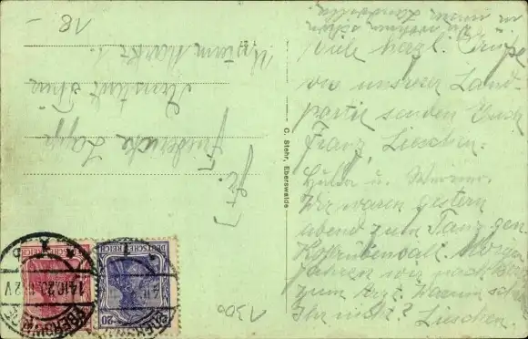 Zustand, siehe Scan, gelaufen, 1920 - ca 14 cm X 9 cm