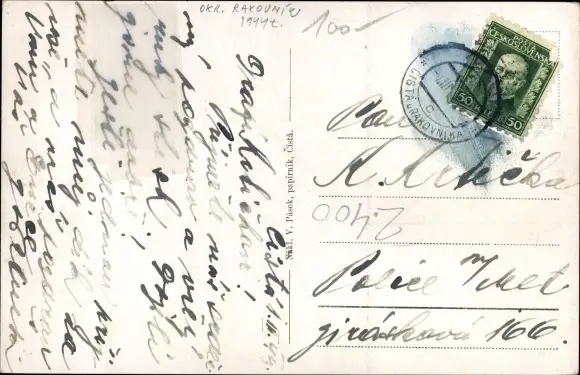 Ak Rakovnik Rakonitz Mittelböhmen, Ortsansicht, Brücke, Kirche