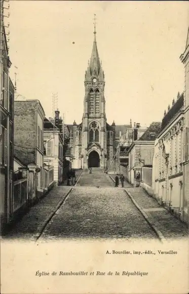 Ak Rambouillet Yvelines, Kirche, Rue de la Republique