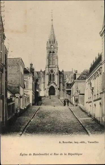 Ak Rambouillet Yvelines, L'Eglise et Rue de la Republique