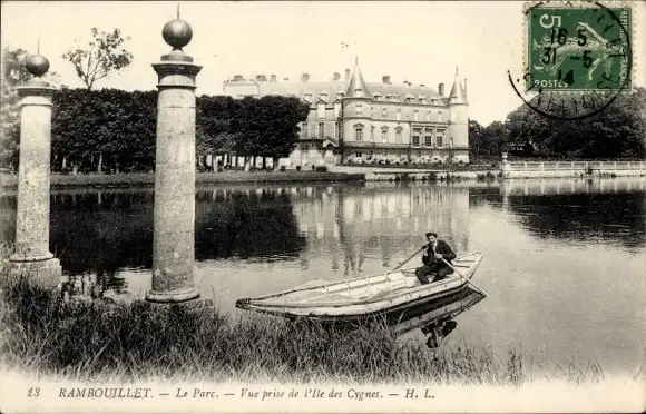 Ak Rambouillet Yvelines, Park, vue prise de l'Ile des Cygnes, Ruderboot