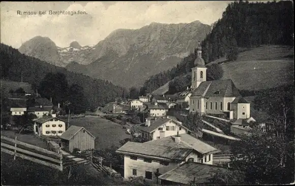 Ak Ramsau Oberbayern, Kirche, Alpen