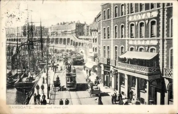 Ak Ramsgate Kent England, Hafen und West Cliff