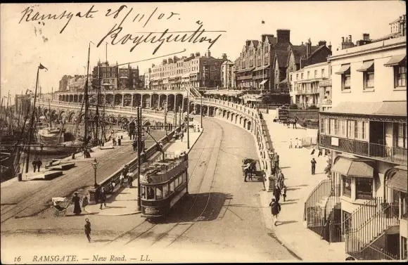 Ak Ramsgate Südostengland, New Road, Seilbahn, Häuser, Hafen