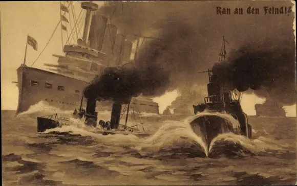 Ak Ran an den Feind, deutsche Kriegsschiffe, Kaiserliche Marine