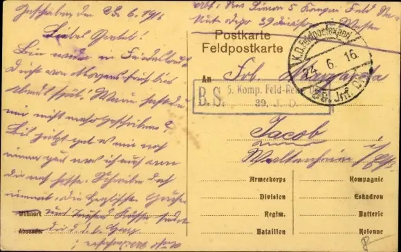 Zustand, siehe Scan, gelaufen, 1916 - ca 14 cm X 9 cm