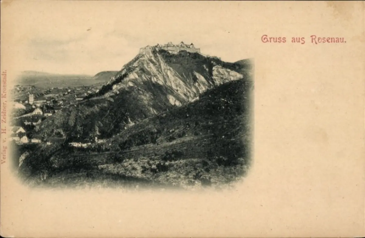 Ak Râșnov Rosenau Rumänien, Gesamtansicht, Gebirge