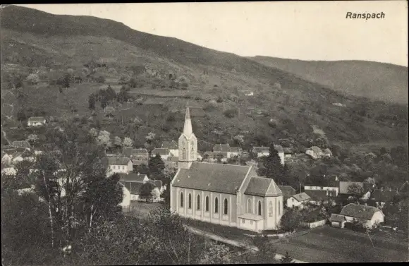 Ak Ranspach Haut-Rhin, Panorama, Kirche