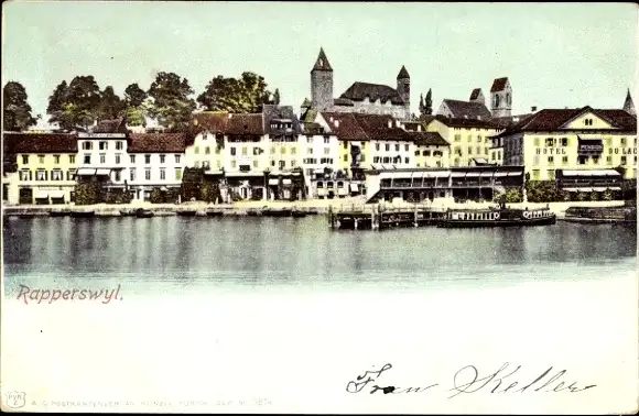 Ak Rapperswil Kanton Sankt Gallen, Häuserreihe, Bootssteg