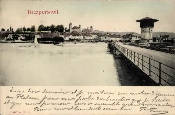 Ak Rapperswil Kanton Sankt Gallen, Teilansicht, Brücke