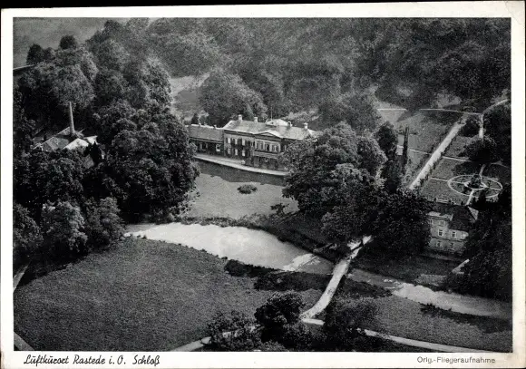 Ak Rastede in Oldenburg, Schloss, Fliegeraufnahme