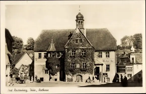 Ak Rastenberg Thüringen, Blick auf das bewachsene Rathaus