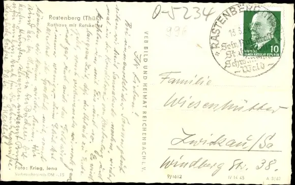 Ak Rastenberg in Thüringen, Rathaus, Ratskeller, HO-Gaststätte